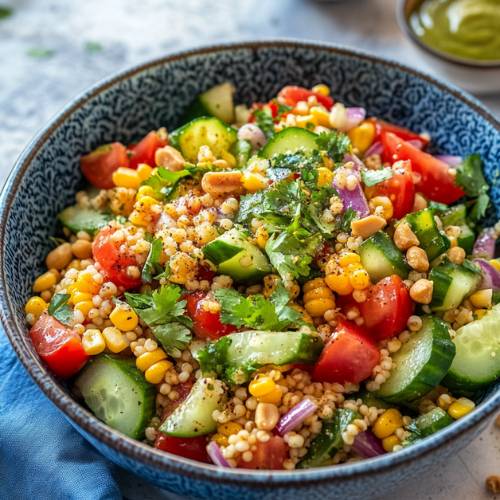 Once the roasted ingredients are completely cool, it’s time to build your salad. In a large serving bowl, add the roasted sweet potato, beetroot, onion, and chickpeas. Then sprinkle on your toppings: a handful of chopped parsley for freshness, chopped walnuts for crunch, and pomegranate seeds for a juicy pop of flavor. Finally, pour the dressing over everything and gently toss the salad until all the ingredients are evenly coated.