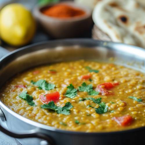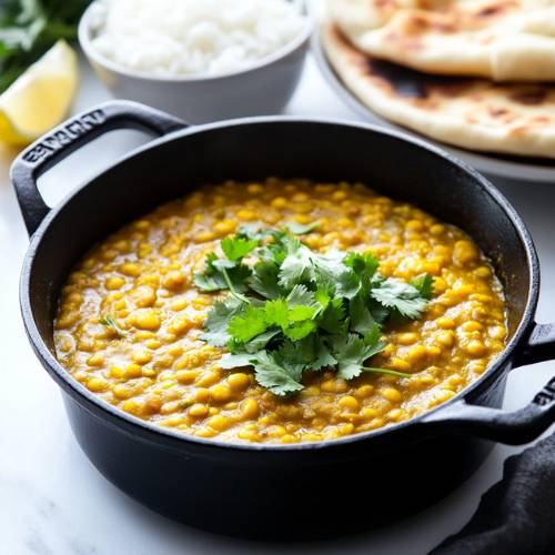 • Topped with fresh coriander, a dollop of yogurt, and a squeeze of lemon