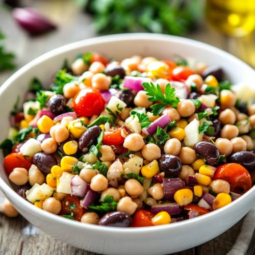 Next up, the beans! Open your cans and pour the beans into a colander or strainer. Rinse them well under cold running water to remove any salty liquid or preservatives. Let them drain fully to avoid making your salad watery. Once drained, transfer the beans to a large mixing bowl where you’ll start combining all the goodness.