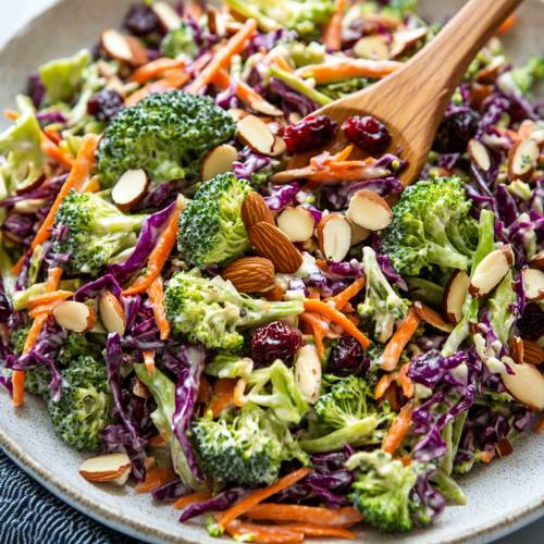 If you’re looking for a super easy, super tasty, and super healthy meal this Raw Broccoli Salad is a winner. It’s packed with fiber, fun textures, and gut-friendly ingredients. The best part? You don’t even have to turn on the stove! This recipe is full of flavor, creamy dressing, and a mix of crunchy, sweet, and savory bites. It’s the kind of salad that keeps you coming back for more.