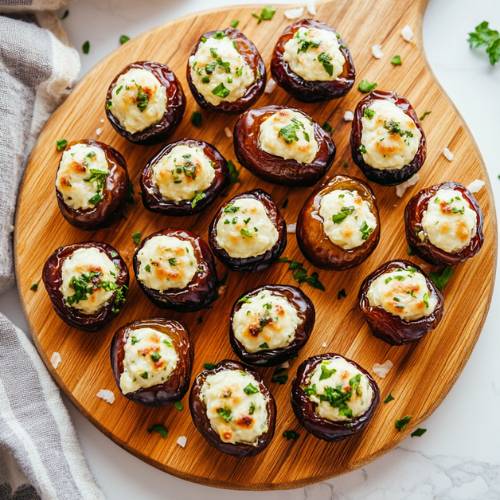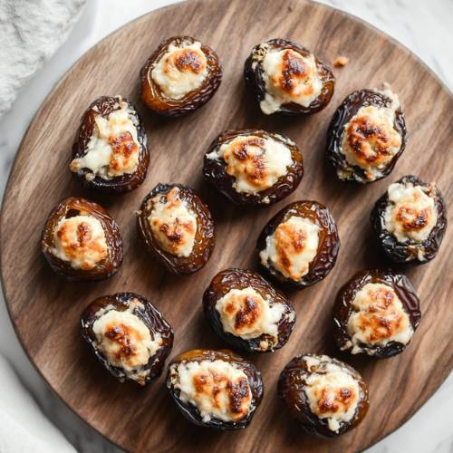 After cooking, take the tray out and let the stuffed dates cool for 1 to 2 minutes. This helps the cheese set a little and makes them easier to pick up and eat. Then, serve them warm while the cheese is still soft and delicious!