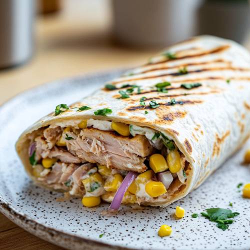 This wrap has everything creamy filling, a little kick from mustard, crunchy sweetcorn, and melty cheddar. I like to toast it in a pan for that perfect golden outside. Let’s make lunch a little more exciting today!