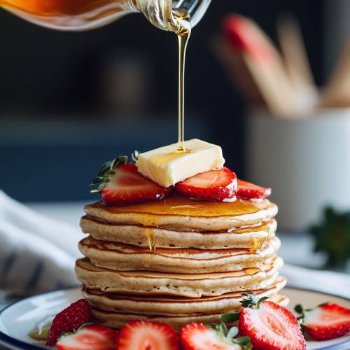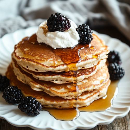 I love topping these pancakes with blueberries and a drizzle of honey. If you’re using frozen blueberries, hereβs a little trick microwave them for about 45 seconds to 1 minute. Youβll get a warm and juicy blueberry compote thatβs perfect on top!
